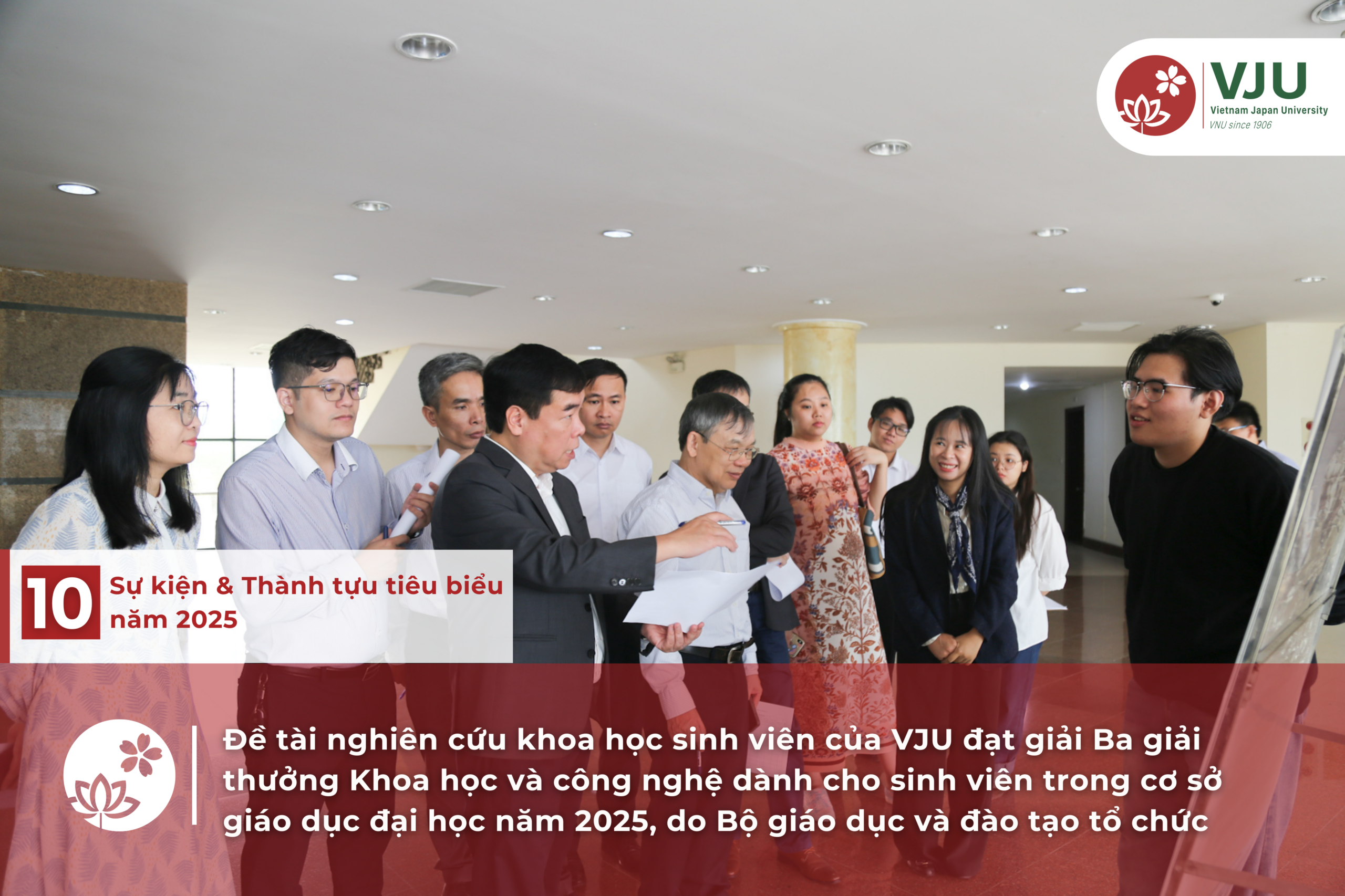 Đề tài nghiên cứu khoa học sinh viên của VJU đạt giải Ba giải thưởng Khoa học và công nghệ dành cho sinh viên trong cơ sở giáo dục đại học năm 2025, do Bộ giáo dục và đào tạo tổ chức.