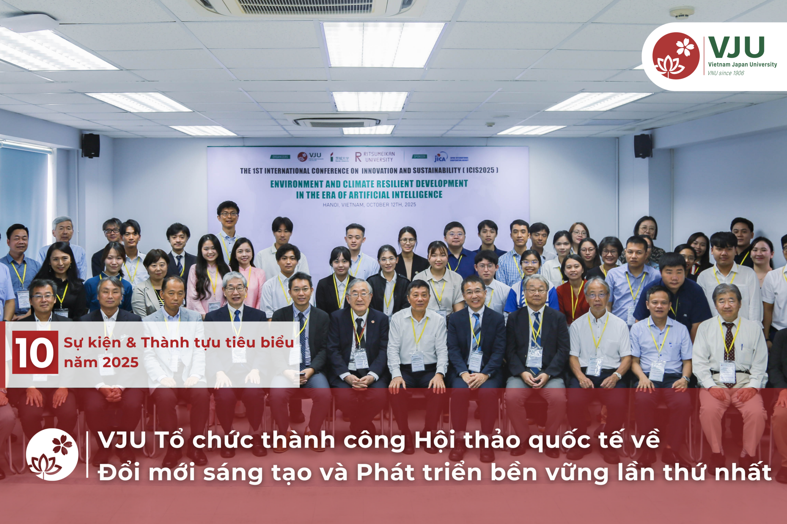 Hội thảo quốc tế về Đổi mới sáng tạo và Phát triển bền vững 2025 (ICIS2025) quy tụ hơn 200 học giả đến từ 8 quốc gia, với gần 90 tóm tắt và bài nghiên cứu được gửi tham dự. Hội thảo diễn ra tại Trường Đại học Việt Nhật vào ngày 12/10/2025.