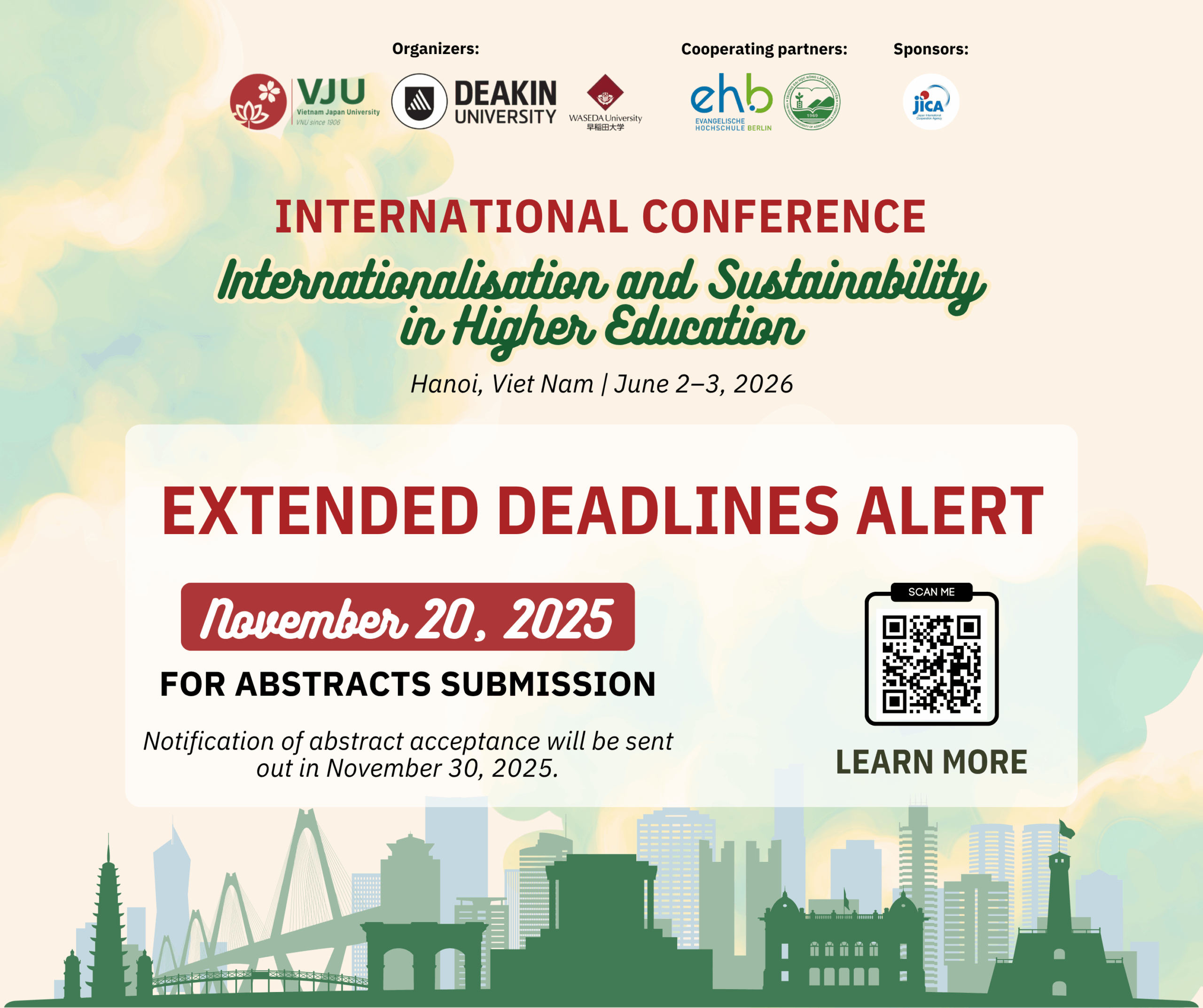 This extension aims to give more time for researchers, lecturers, and students to prepare and submit high-quality abstracts for consideration. We welcome contributions related to the conference theme: Internationalisation and Sustainability in Higher Education.