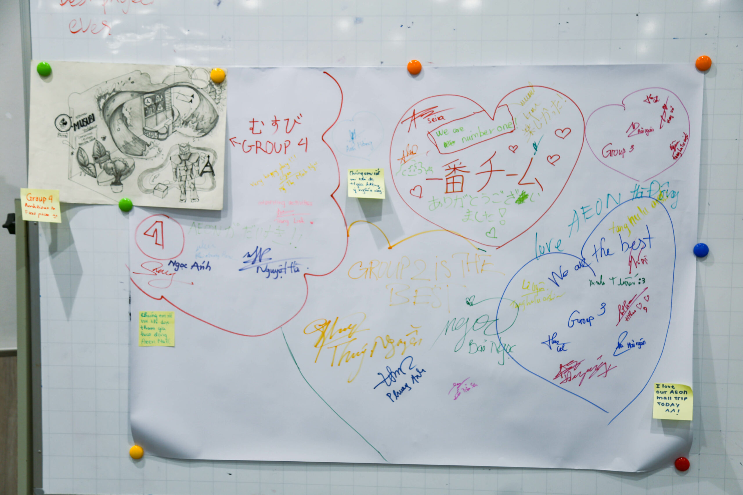 Trở lại hội trường sau chuyến thăm quan, các bạn BGDI càng thêm hào hứng trình bày ý tưởng mình đã chuẩn bị cho cuộc thi “ECO Idea for AEON”. Sau bốn phần thuyết trình sáng tạo, Nhóm 1 dành chiến thắng chung cuộc với ý tưởng về “Trạm refill EcoLoop” – mô hình cho phép khách hàng dùng đồ đựng cá nhân khi mua các sản phẩm như sữa tắm, dầu gội, nước rửa tay…, qua đó giảm rác thải nhựa dùng một lần. Ý tưởng được đánh giá cao nhờ tính tiện lợi, khả thi và định hướng tiêu dùng bền vững.