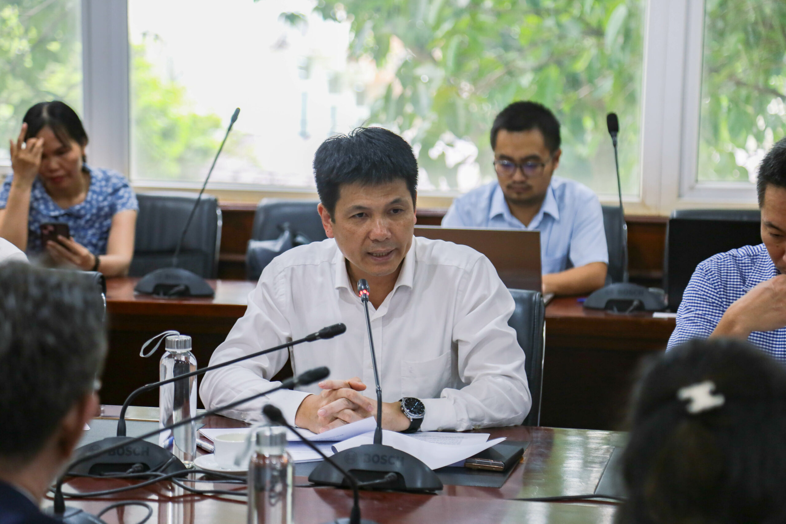 TS Nguyễn Hoàng Oanh, Phó Hiệu trưởng Thường trực Trường Đại học Việt Nhật (VJU), tham gia thảo luận chi tiết về phương án thúc đẩy tiến độ Dự án xây dựng VJU sử dụng vốn vay ODA Nhật Bản cùng Cơ quan Hợp tác Quốc tế Nhật Bản (JICA) và ĐHQGHN. Cuộc họp diễn ra chiều 17/9 tại Nhà Điều hành, ĐHQGHN (144 Xuân Thủy, Hà Nội).