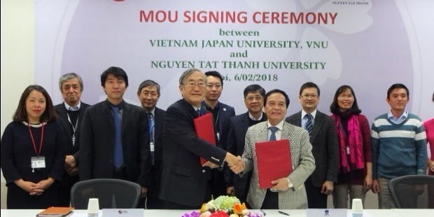 Vietnam Japan University (VJU) and Nguyen Tat Thanh University (NTTU) signed a cooperation agreement in a formally-organized ceremony on February 6, 2018, marking a milestone in their working partnership.