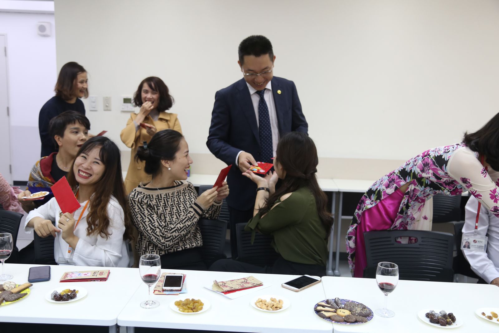 In the first working day at VJU, VJU staffs and lecturers has reunited after 9 days off for Tet Holiday. As Vietnamese traditional etiquette, normally in the first day of the working year, people usually gather to greet and give “lì xì” to each other for the wish of happy, healthy and wealthy year.