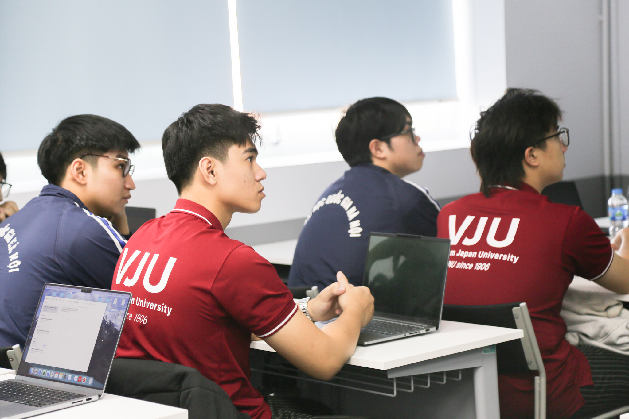 Ngày 1/12, sinh viên năm thứ ba ngành Cơ điện tử thông minh và sản xuất theo phương thức Nhật Bản (MJM) đã có cơ hội học trực tiếp với Phó Tổng Giám đốc Toray, ông Kutsuzawa Toru, để tìm hiểu về triết lý sản xuất và chiến lược công nghệ của tập đoàn.