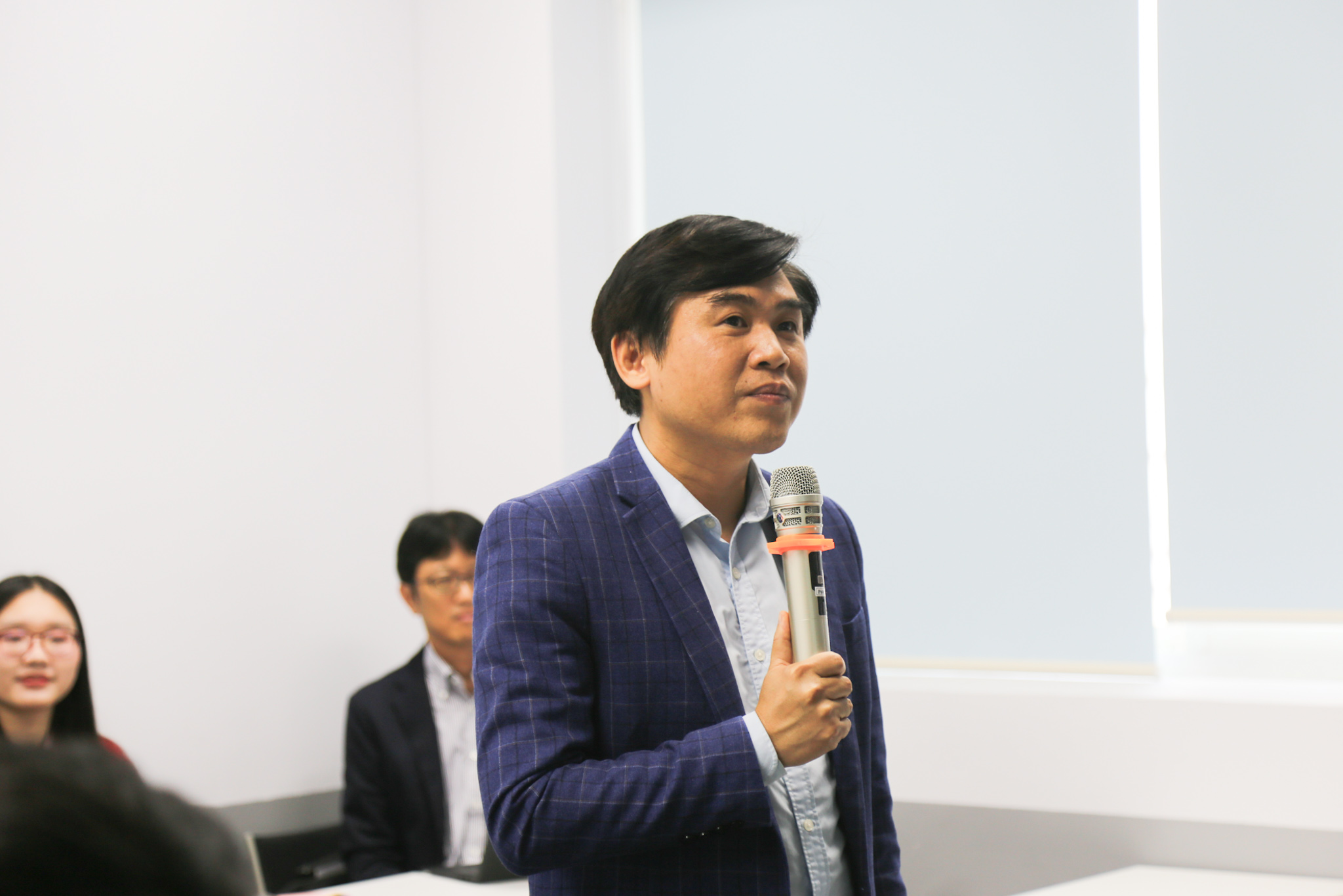 Cùng “học” với sinh viên, TS. Nguyễn Văn Thắng, Giám đốc chương trình MJM, hỏi về hợp tác nghiên cứu và phát triển. Toray cho biết công ty hợp tác chặt chẽ với nhiều trường đại học, viện nghiên cứu cũng như các hiệp hội tại Nhật Bản thông qua việc tham gia các dự án nghiên cứu chung. Đó là cách Toray phát triển công nghệ lõi từ nhiều nguồn thi thức, đồng thời tăng cường kết nối doanh nghiệp với viện, trường theo hướng phát triển bền vững.