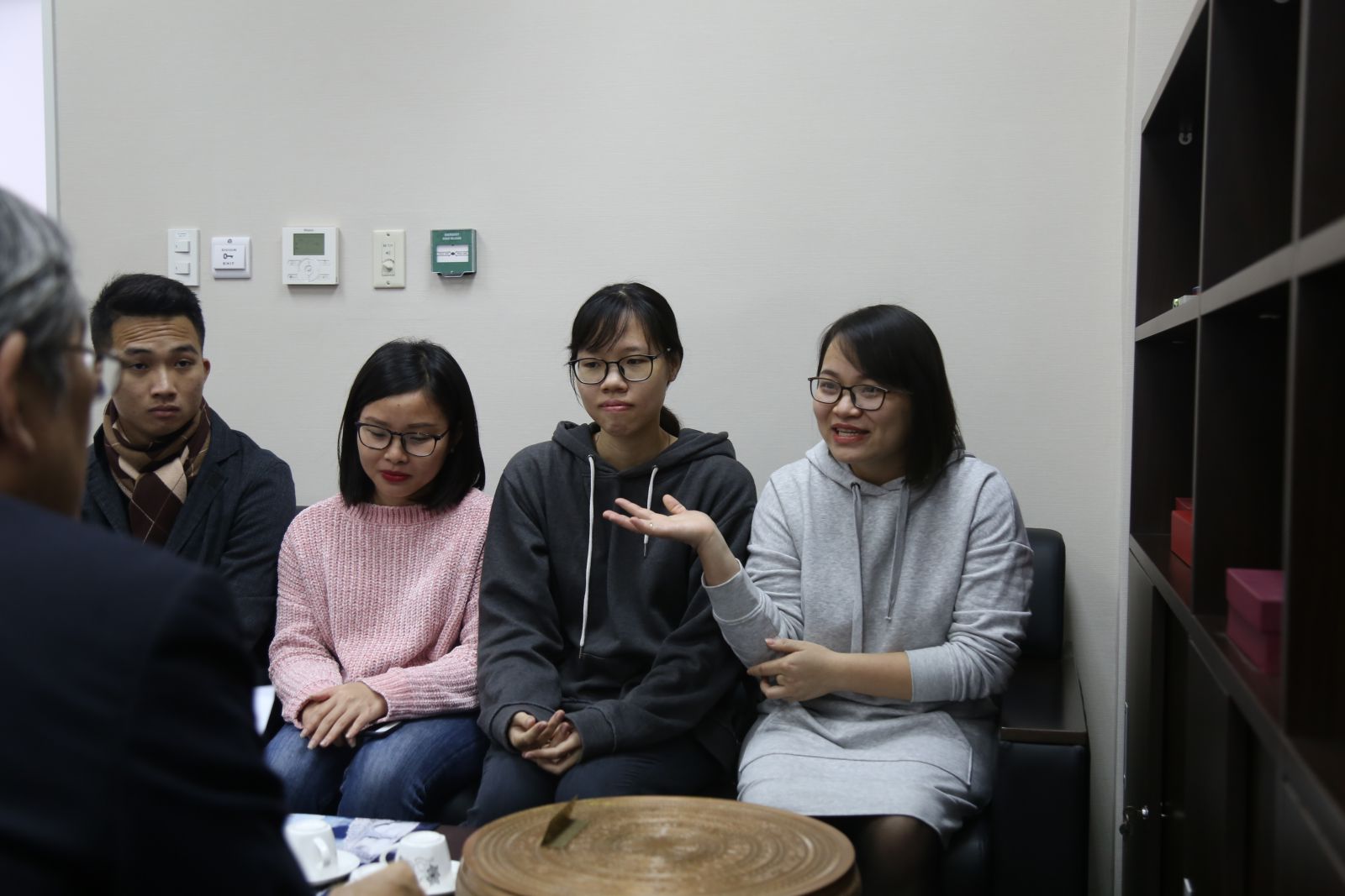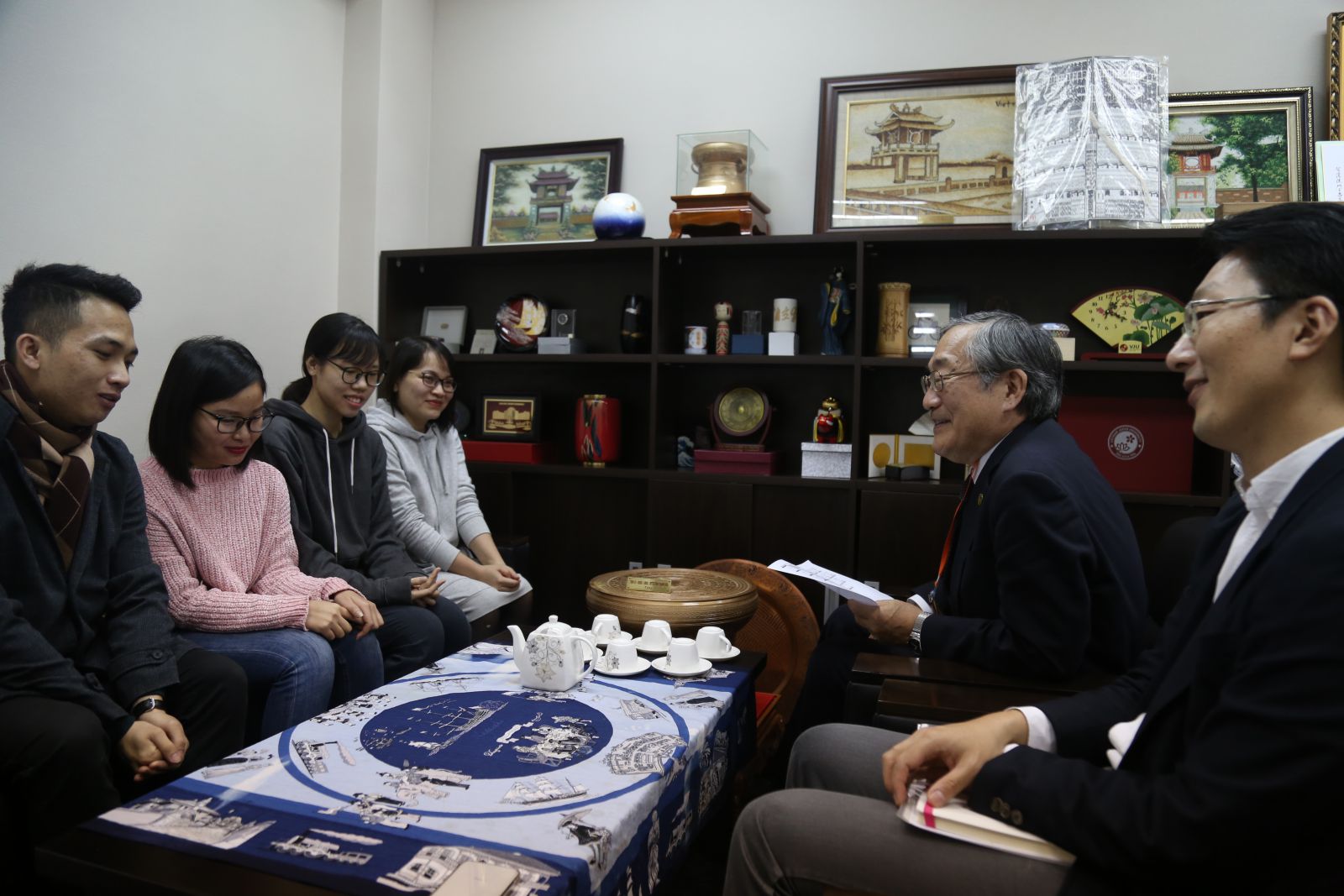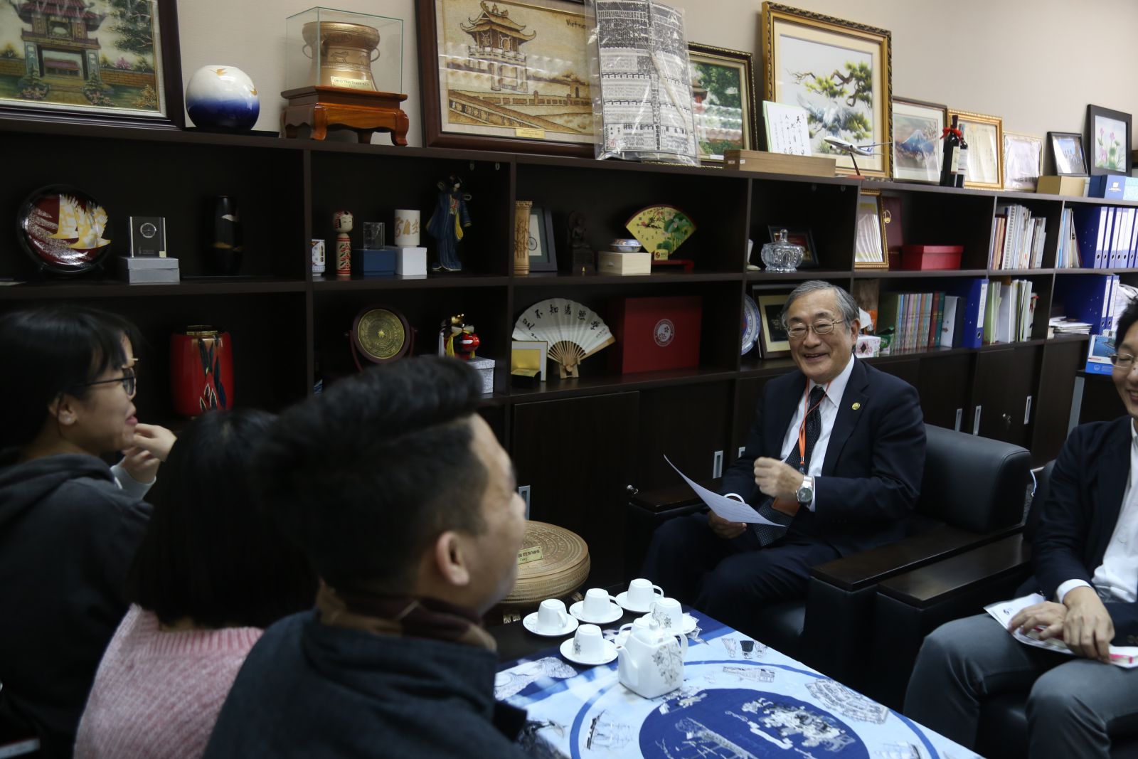 Học viên trao đổi cùng Hiệu trưởng Furuta Motoo về những trải nghiệm của mình