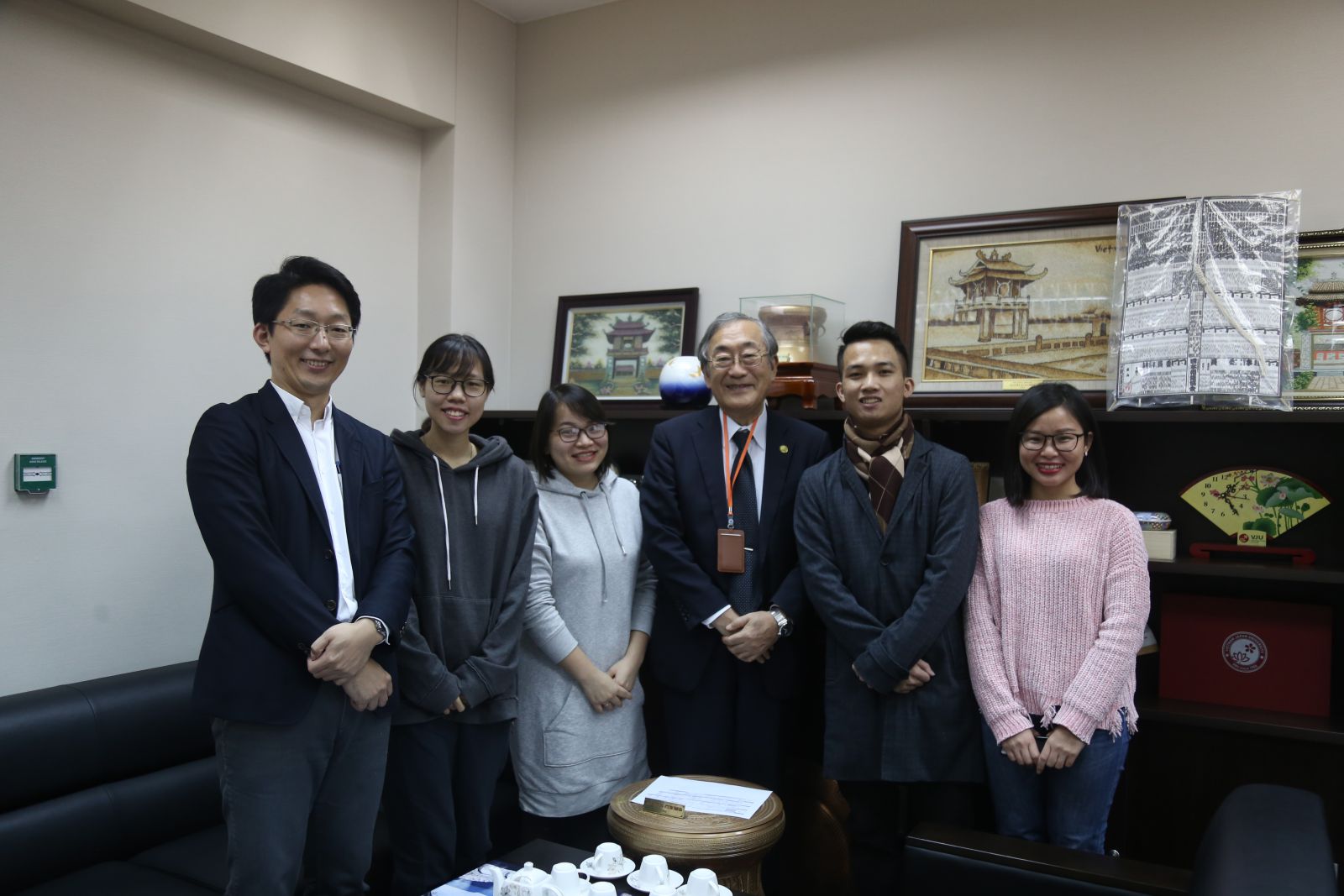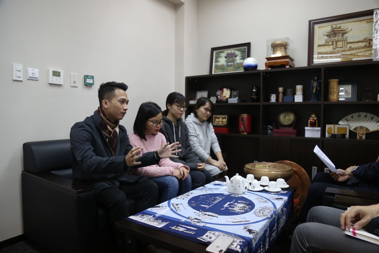 Nguyễn Thị Quế Hường (Chương trình Thạc sỹ Khu vực học) chia sẻ với Hiệu trưởng Furuta Motoo: “Chúng em được gặp gỡ rất nhiều sinh viên đến từ những trường đại học danh tiếng của Nhật Bản như Đại học Tokyo, Đại học Waseda,… Quả nhiên với danh tiếng của mình, các bạn đều là những sinh viên rất xuất sắc và chúng em đã học hỏi được rất nhiều điều từ các bạn.