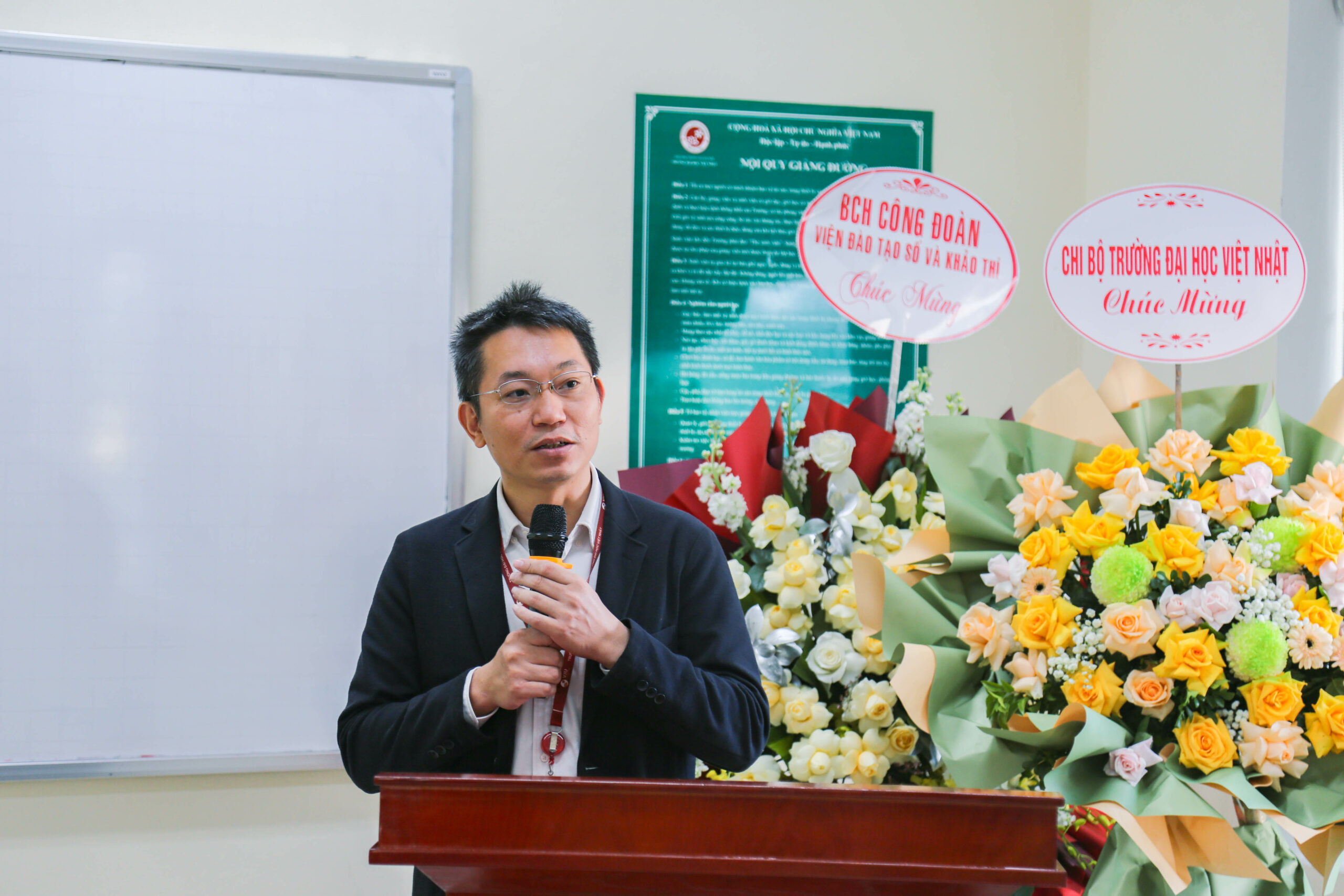 Chiều 24/11/2025, tại Trường Đại học Việt Nhật, cơ sở Hòa Lạc, Đại hội Công đoàn Trường lần thứ III, nhiệm kỳ 2025-2030 đã được tổ chức thành công tốt đẹp. Đại hội là dịp sinh hoạt chính trị rộng rãi của toàn thể công đoàn viên nhằm xem xét, thảo luận, tổng kết hoạt động của nhiệm kỳ 2023-2025, từ đó định ra phương hướng, nhiệm vụ cho nhiệm kỳ 2025 – 2030.