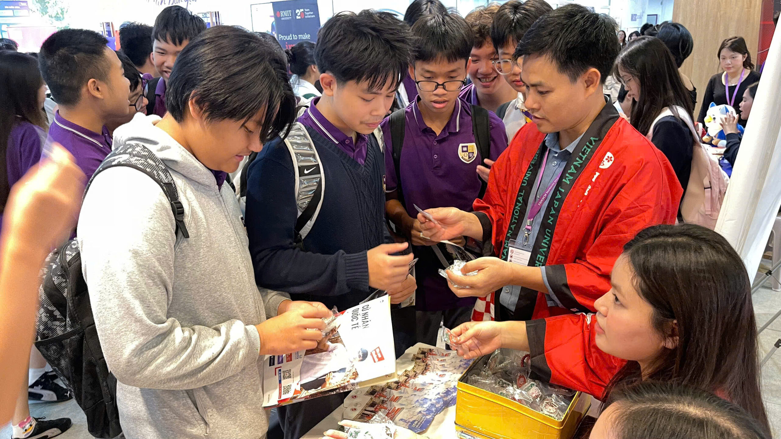 Tại gian tư vấn, đội ngũ VJU đã giới thiệu đến học sinh các chương trình đào tạo theo chuẩn Nhật Bản, được thiết kế dựa trên sự kết hợp giữa kiến thức học thuật và kỹ năng thực tiễn. Phụ huynh và học sinh cũng được cung cấp thông tin về các cơ hội học bổng, chương trình thực tập, trao đổi quốc tế cùng các trường đại học và doanh nghiệp đối tác tại Nhật Bản.
